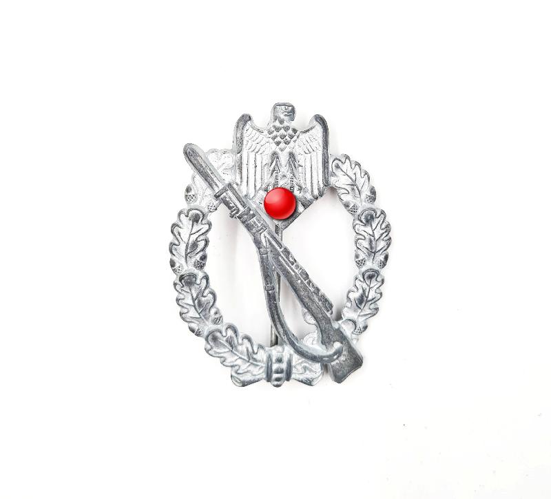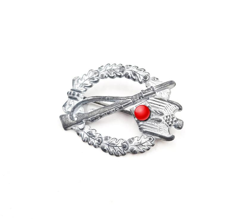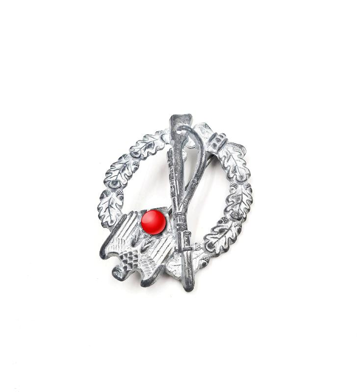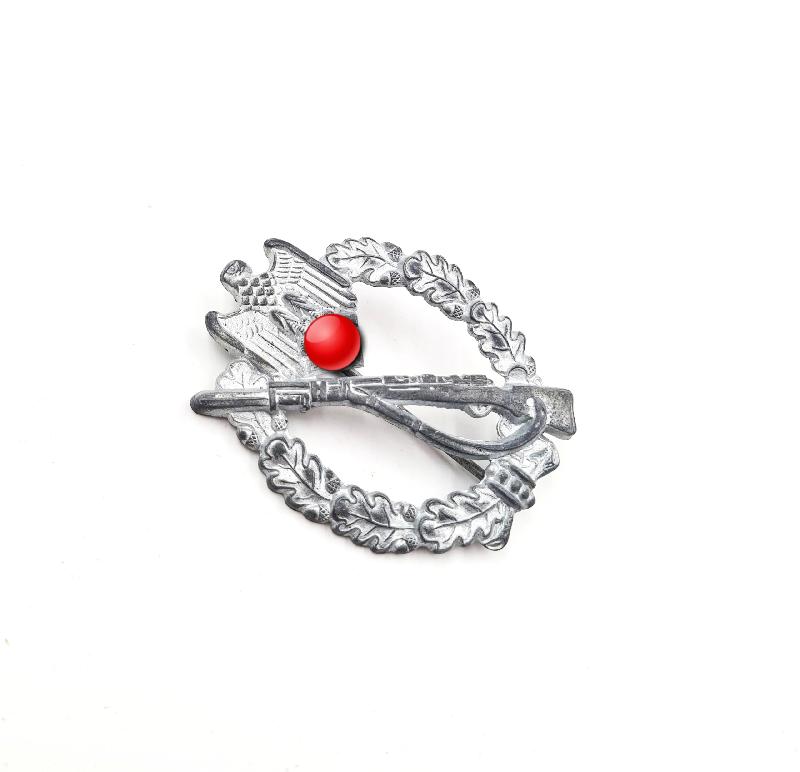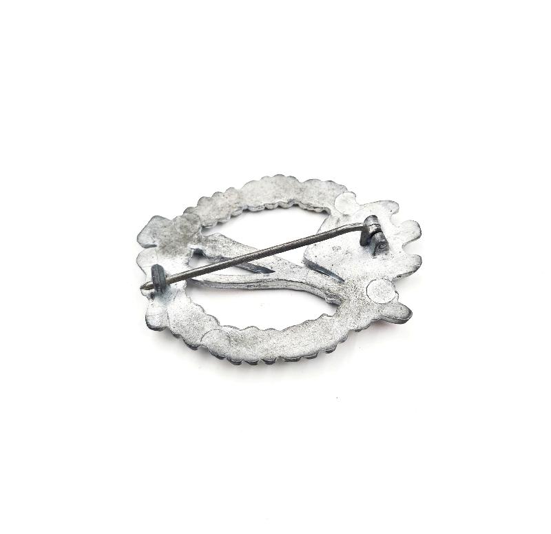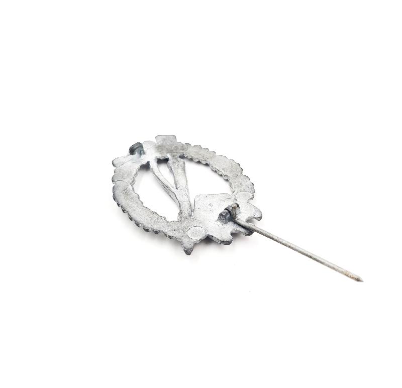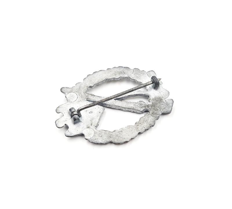 Bel insigne en zinc moulé de fabrication Assmann, marquage "4" au dos.