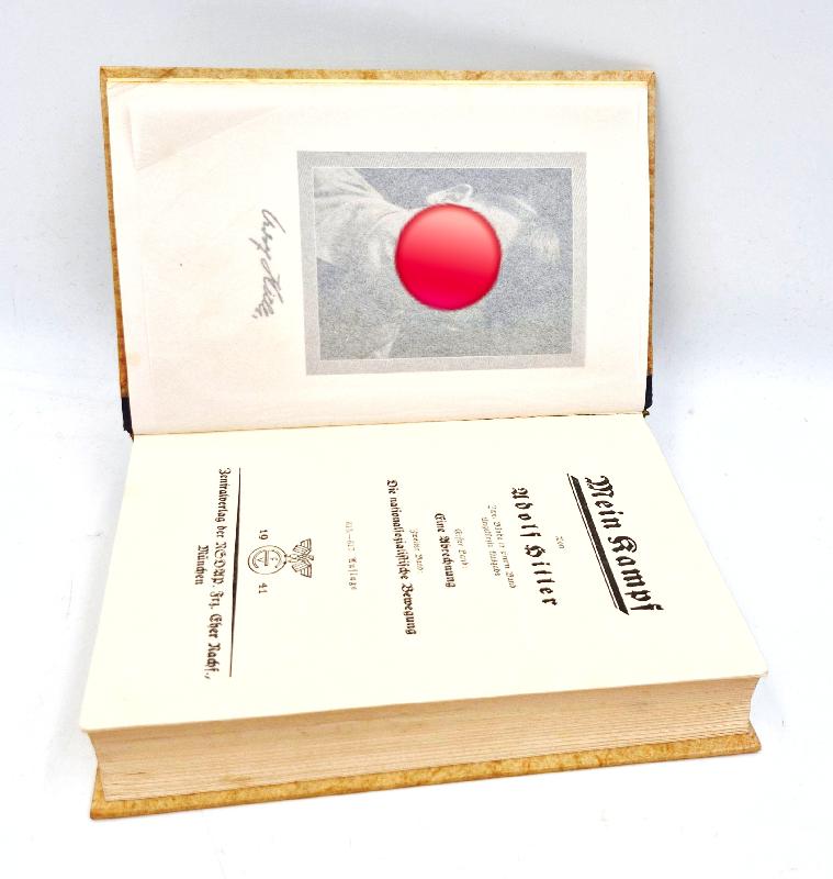 Livre Mein Kampf avec armoiries de la ville de Leipzig en Saxe.