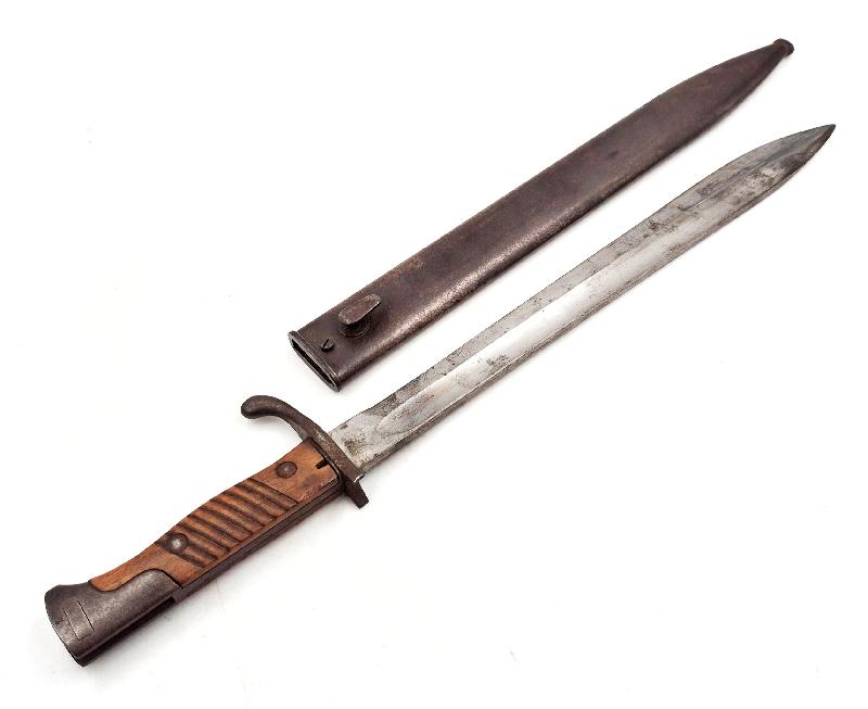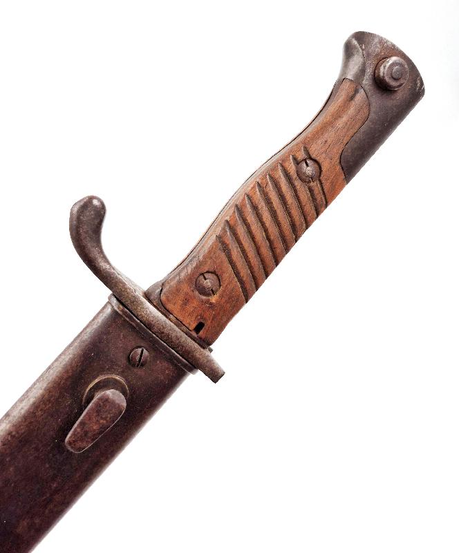 Baïonnette allemande modèle 98/05 du 1er type avec embryon de douille et poignée sans pare flamme.