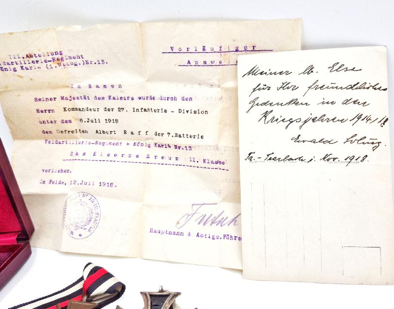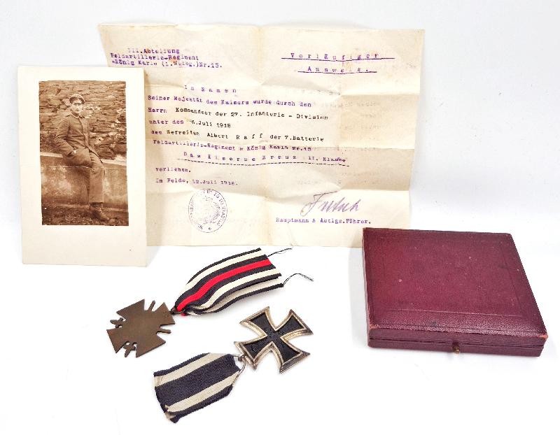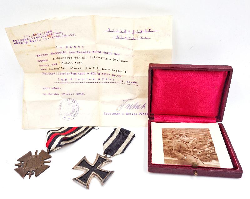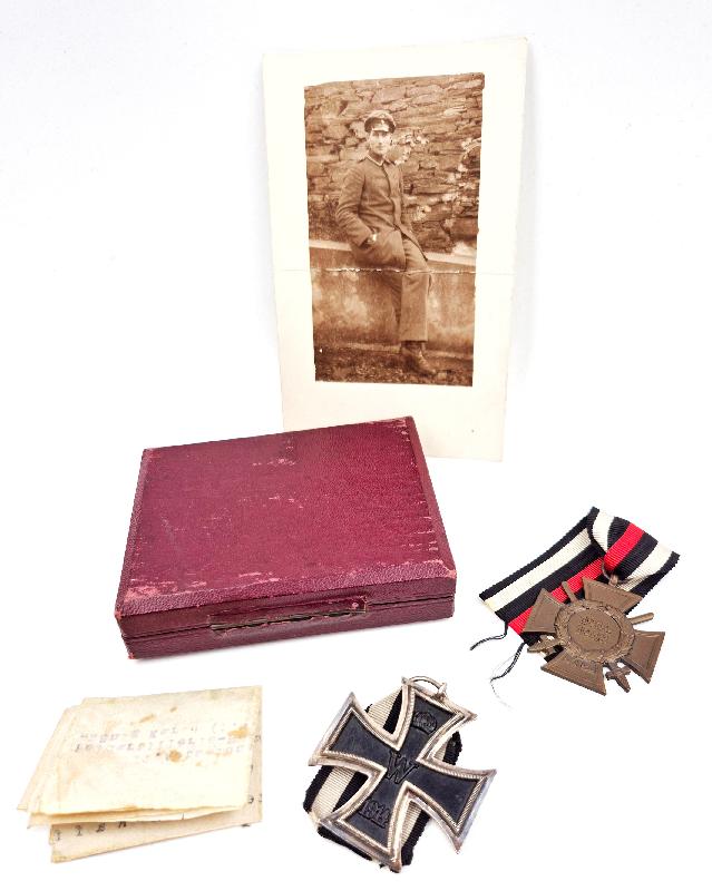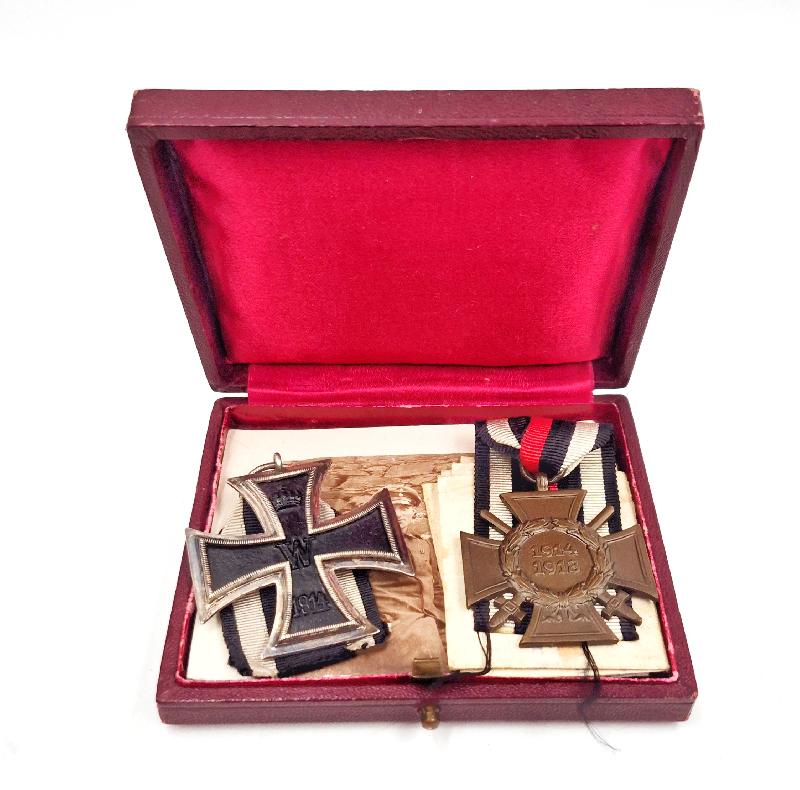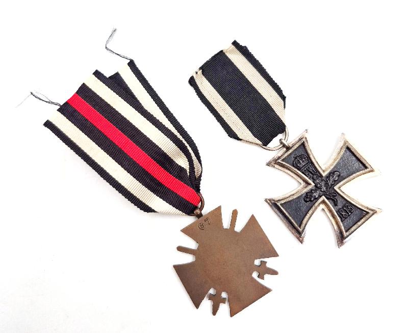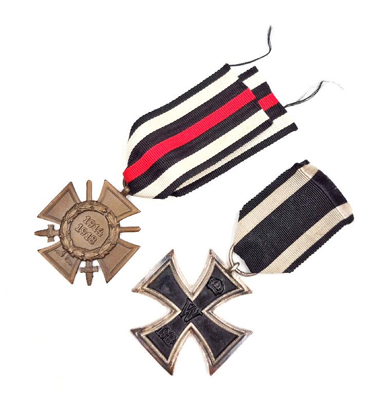 -Une croix de fer 1914 de seconde classe avec poinçon sur l'anneau et son ruban d'origine.