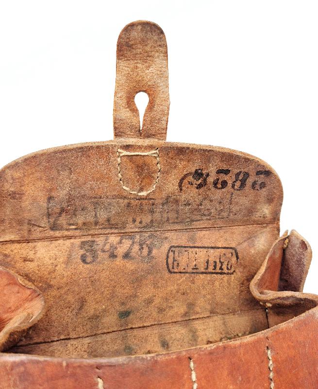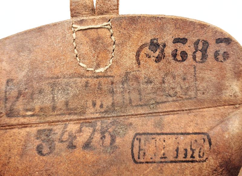 De nombreux marquages sous le rabat, notamment celui du 23ème régiment du train.
