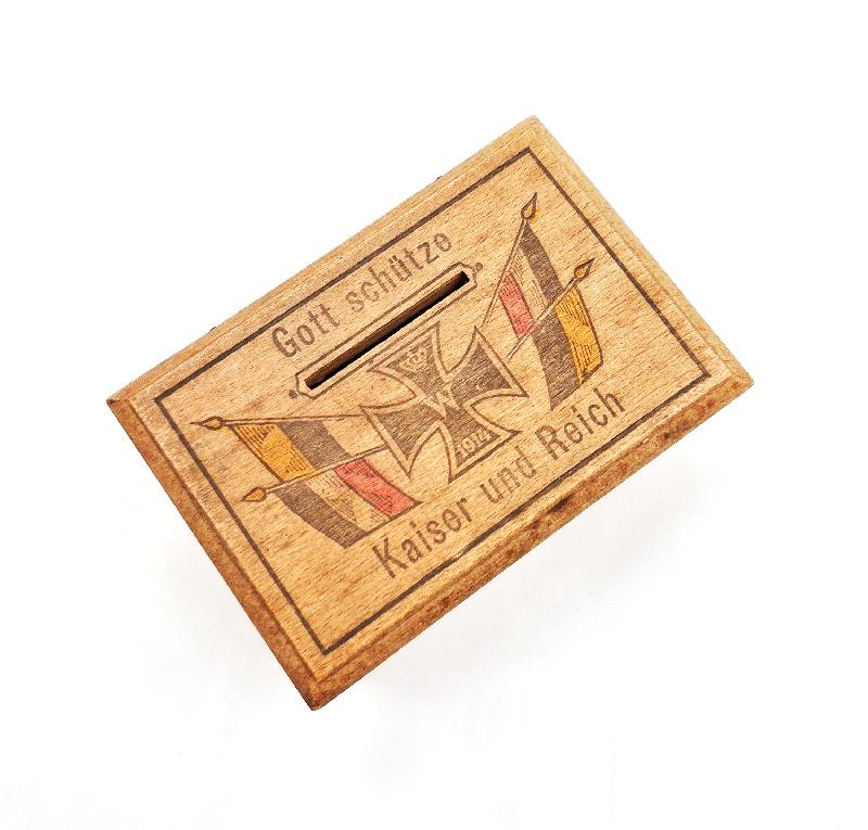 Le couvercle est orné d'une croix de fer et des drapeaux de l'alliance.