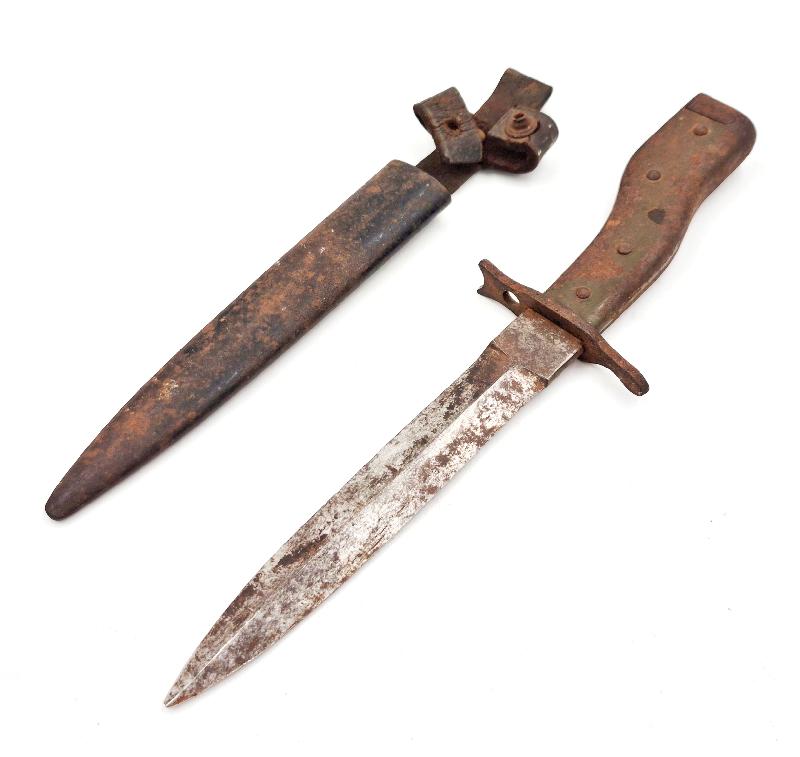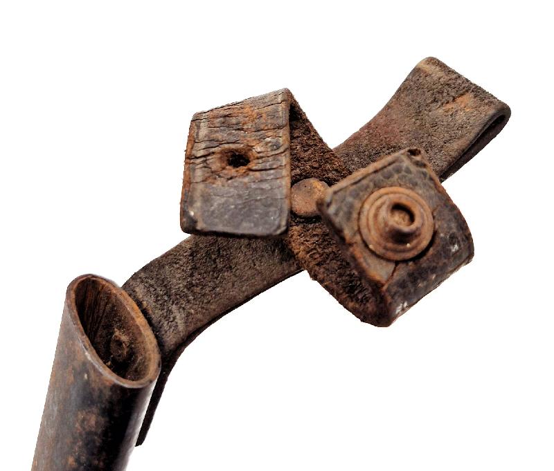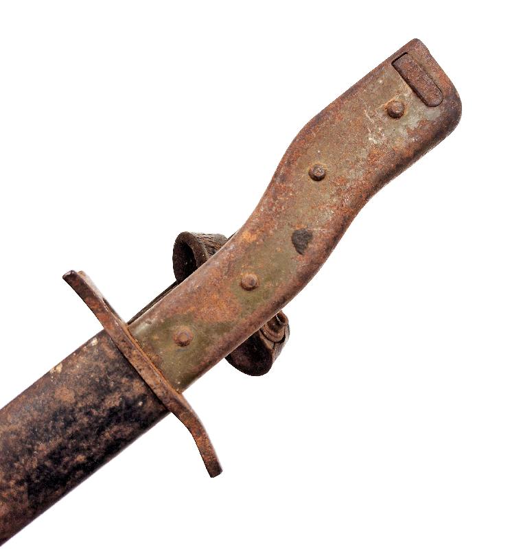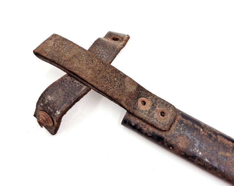 Sur la partie brelage du fourreau, il manque la partie supérieure d'un bouton pression de fermeture.