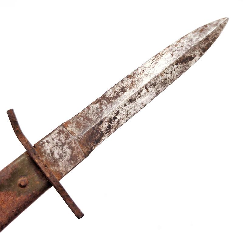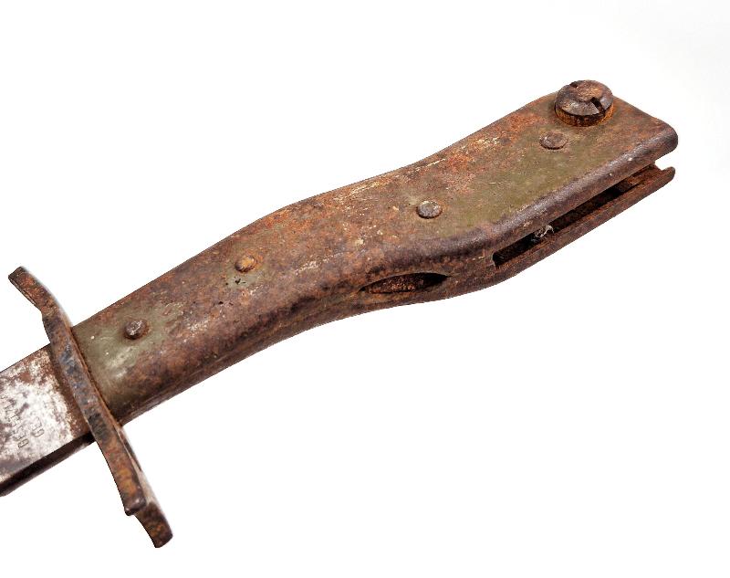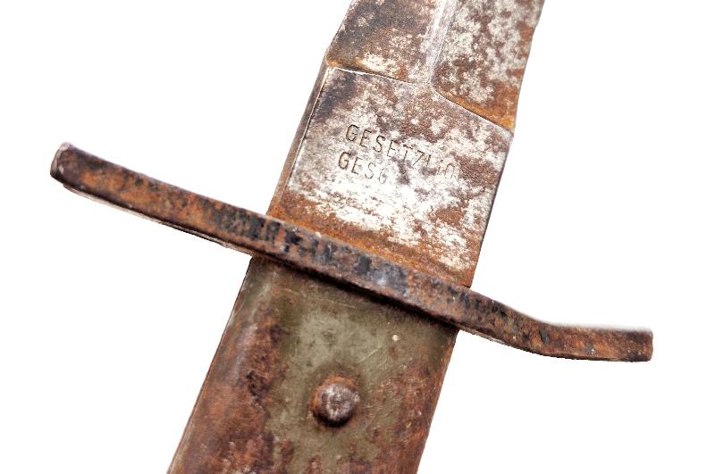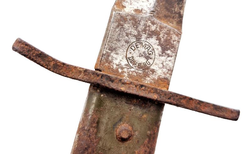 De beaux restes de peinture feldgrau sur la poignée, bouton poussoir parfaitement fonctionnel.