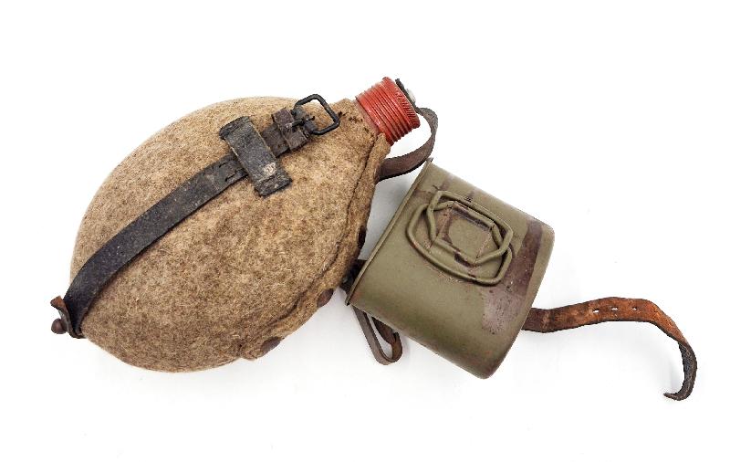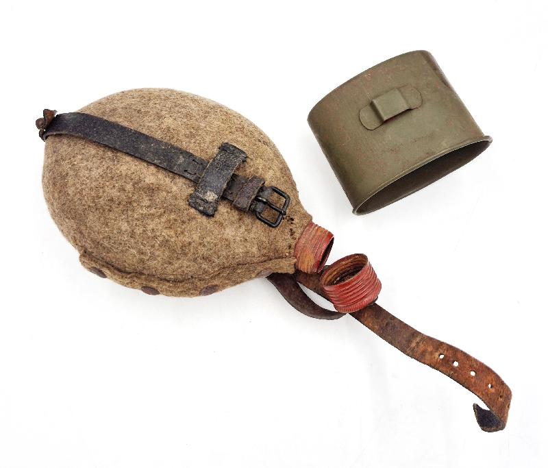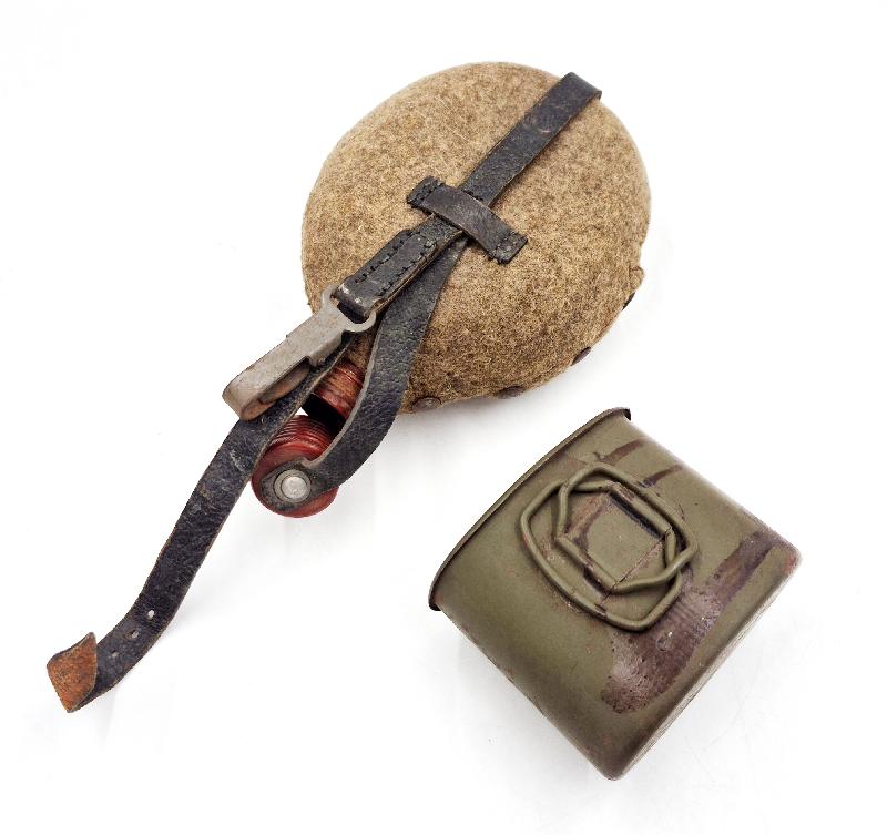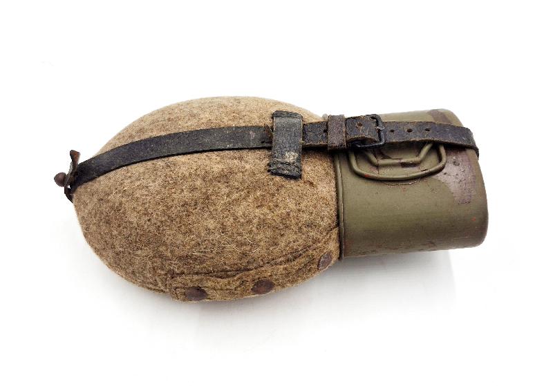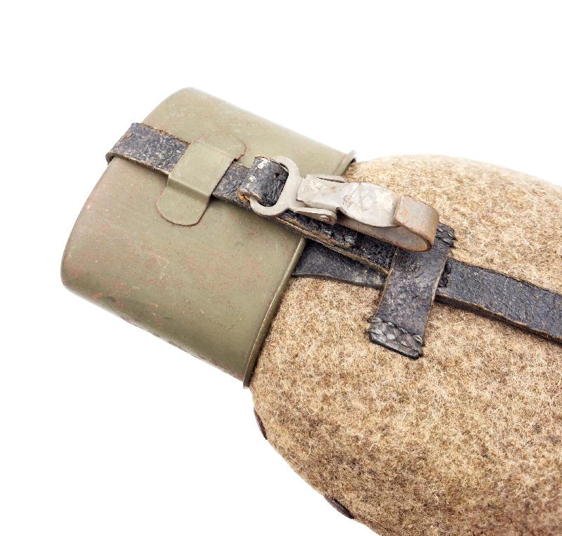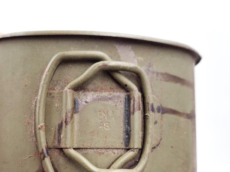 Bidon allemand WW2 fin de guerre en acier émaillé