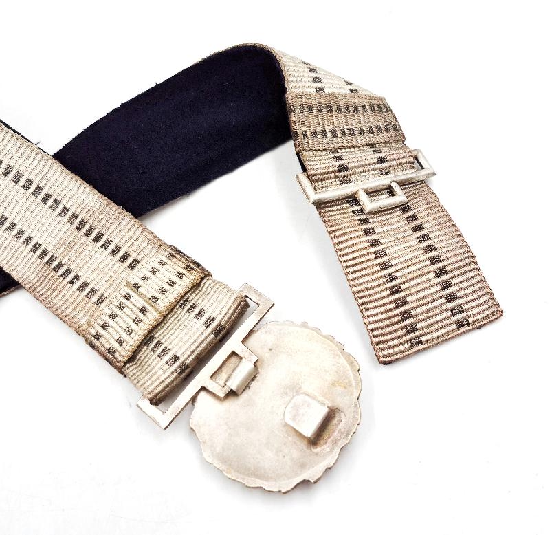 La boucle, de couleur argent, indique une utilisation pour les officiers à terre ou d'administration.