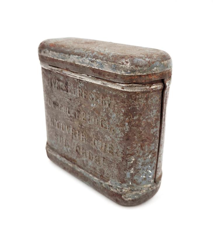 La face avant est marquée "Vivres de réserve - Chocolat 250 Gr. - N'ouvrir que sur ordre".