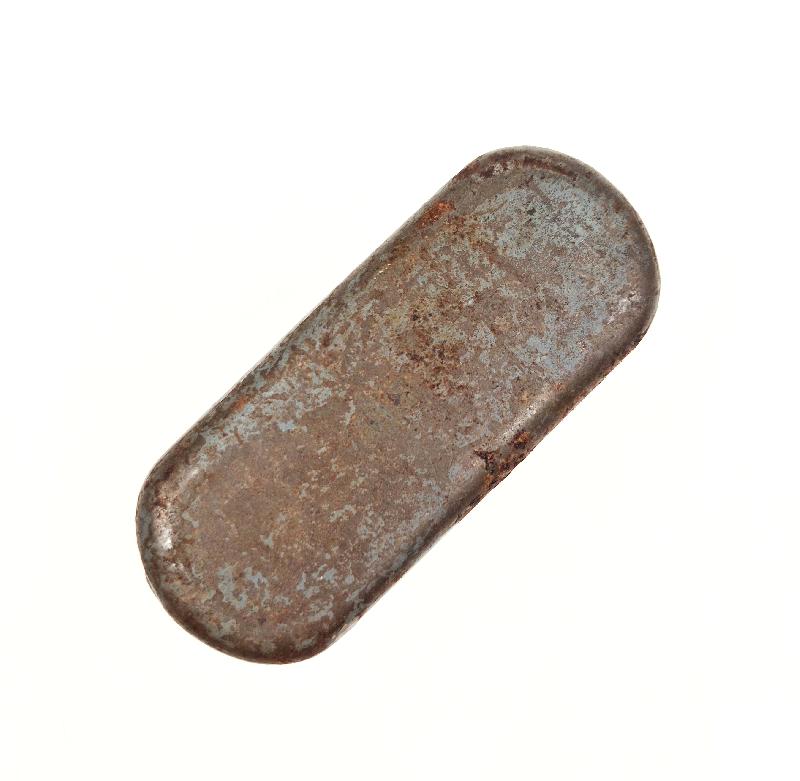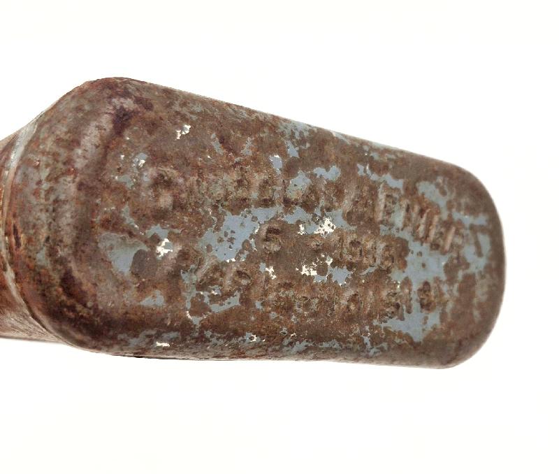 Métal saint et sans perforations, restes de peinture bleu horizon.