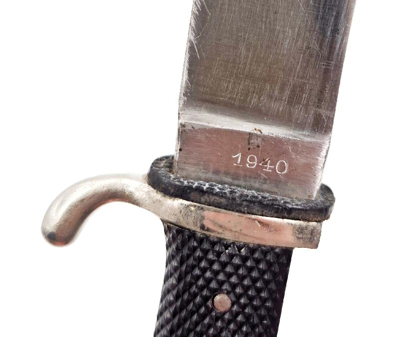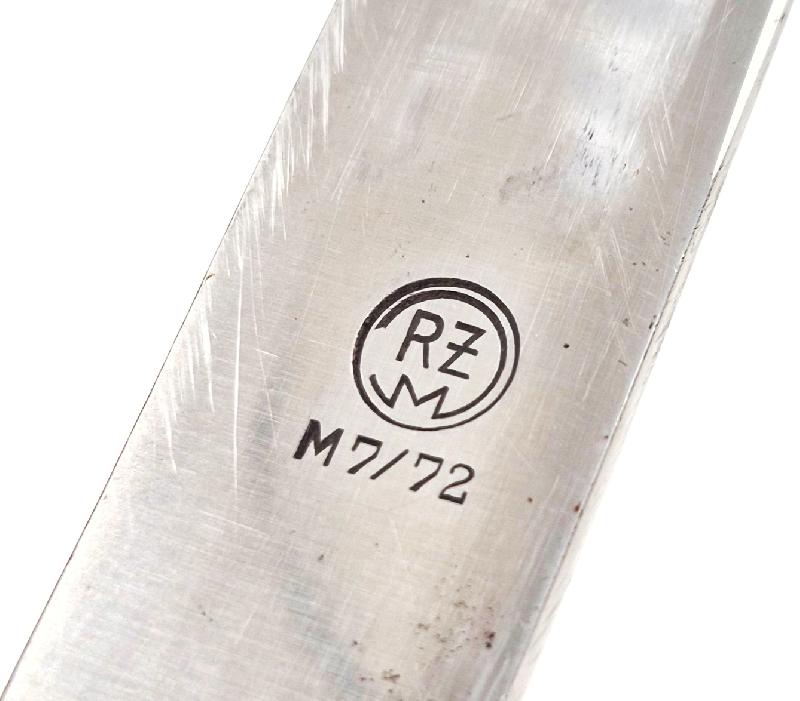 Belle lame datée 1940, dans sa pleine longueur avec quelques traces d'usages. Code "RZM M7/72" correspondant à une production de la firme "Karl Robert Kaldenbach, Solingen".
