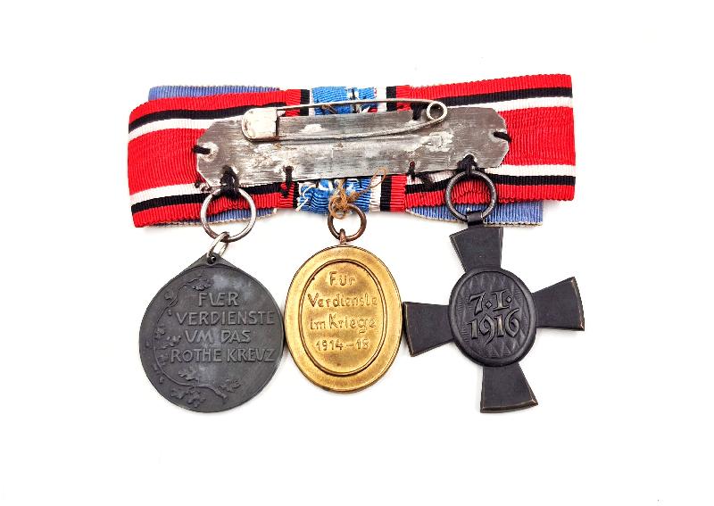 De gauche à droite, Ludwig-Kreuz - Bayerischer Roter Kreuz-Medaille - Preußischer Roter Kreuz-Medaille 3. Klasse.