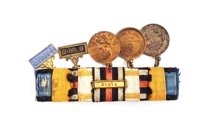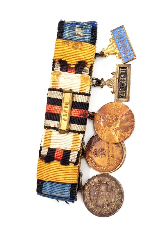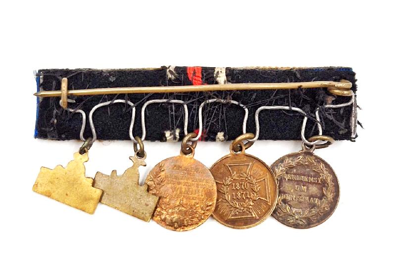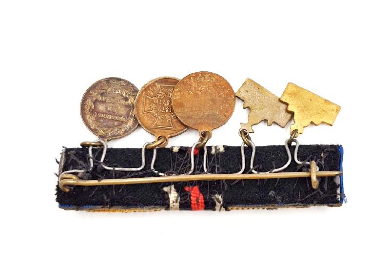 Barette de 5 décorations miniatures d'un vétéran de la guerre Franco-Prussienne de 1870 - 1871.