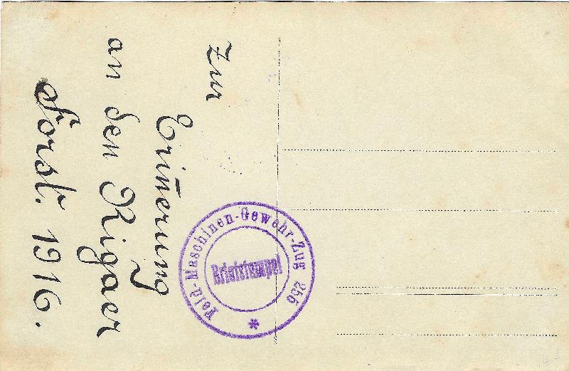 Photo allemande WW1 prise en 1916, représentant des mitrailleurs posants à côté d'un panneau de bois du Feld Maschinen Gewehr Zug 255.