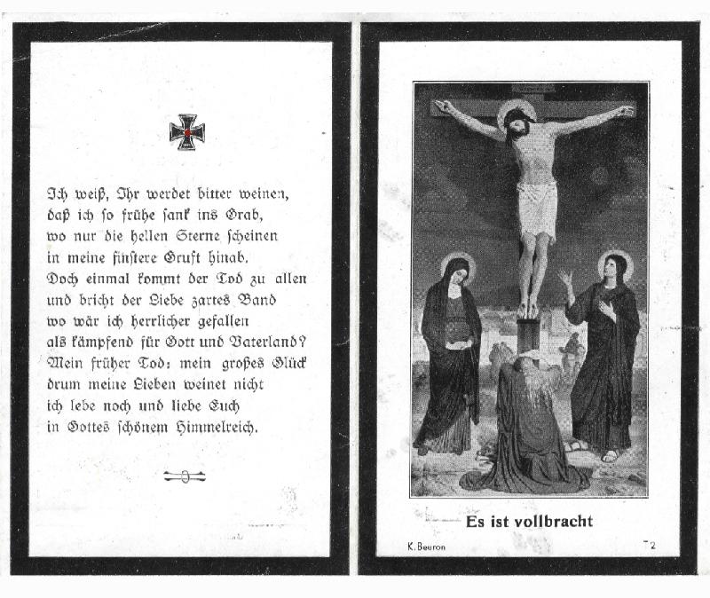 Sterbebild (avis de décès) d'un gefreiter tombé le 5 juin 1940 lors de l'opération "Fall Rot" sur le canal de l'Aisne à l'Oise.